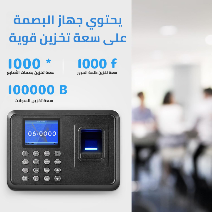 جهاز الحضور والانصراف بالبصمة هو الحل الذكي لتنظيم وقت العمل بدقة واحترافية، سهل الاستخدام ويشتغل بدون إنترنت أو برامج معقدة. مزوّد بشاشة واضحة ومفهومة، منفذ USB ويدعم واجهة باللغة العربية. متوفر الآن مع توصيل مجاني لجميع مدن المغرب 🇲🇦 وضمان لمدة عام كامل.